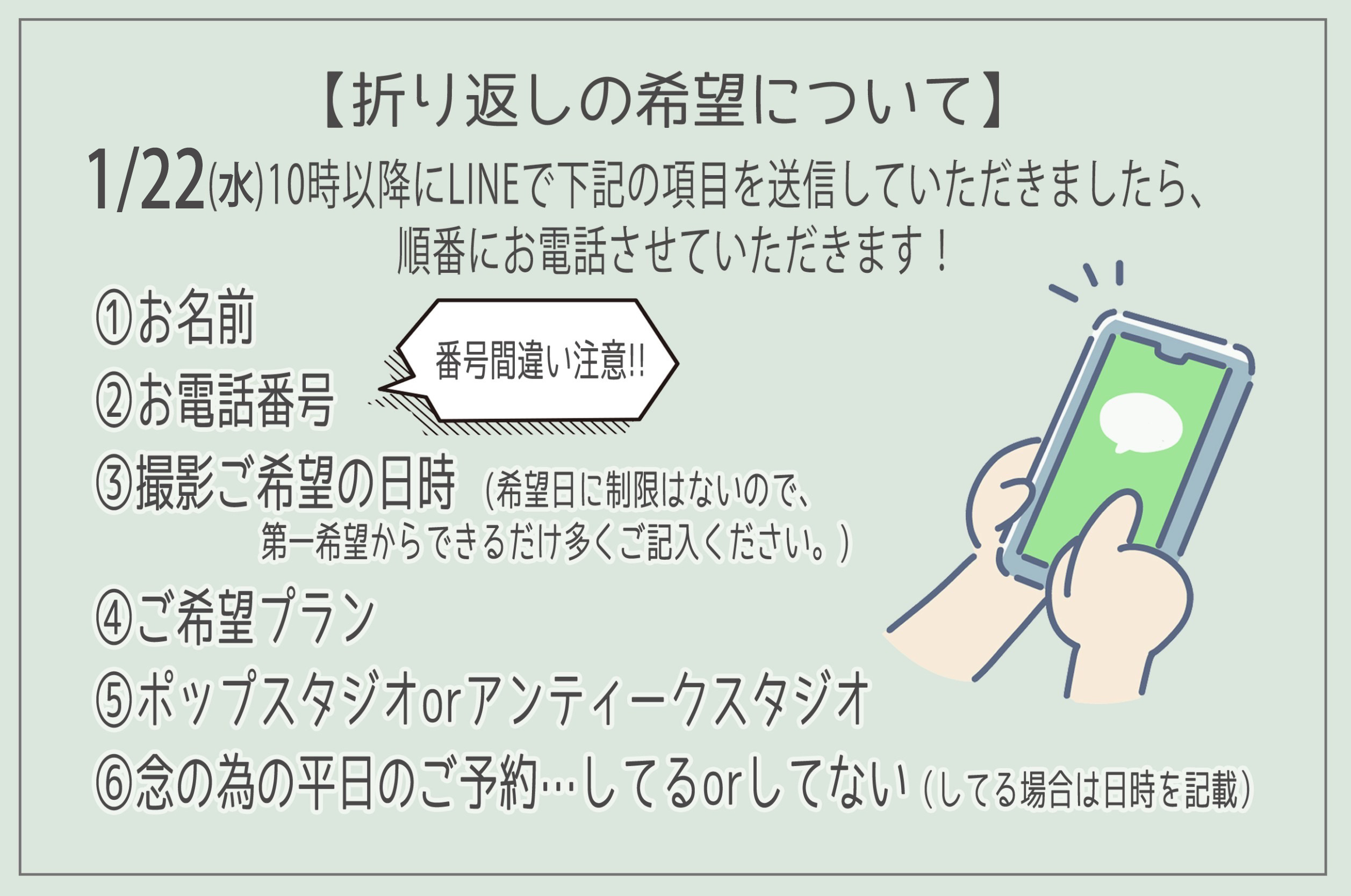 お電話番号の間違いがあると順番が遅くなりますのでご注意ください!
