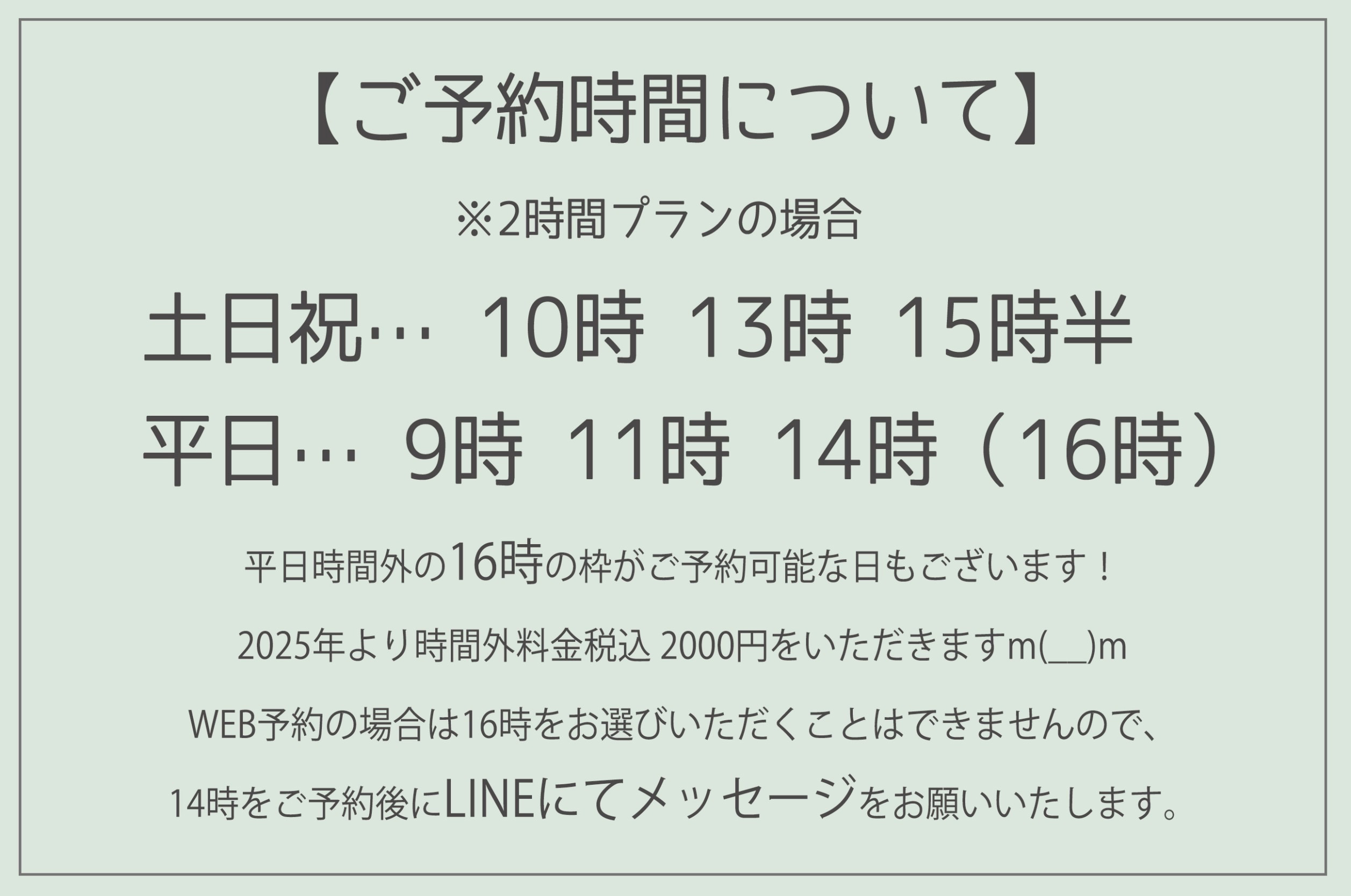【ご予約時間について】※2時間プランの場合