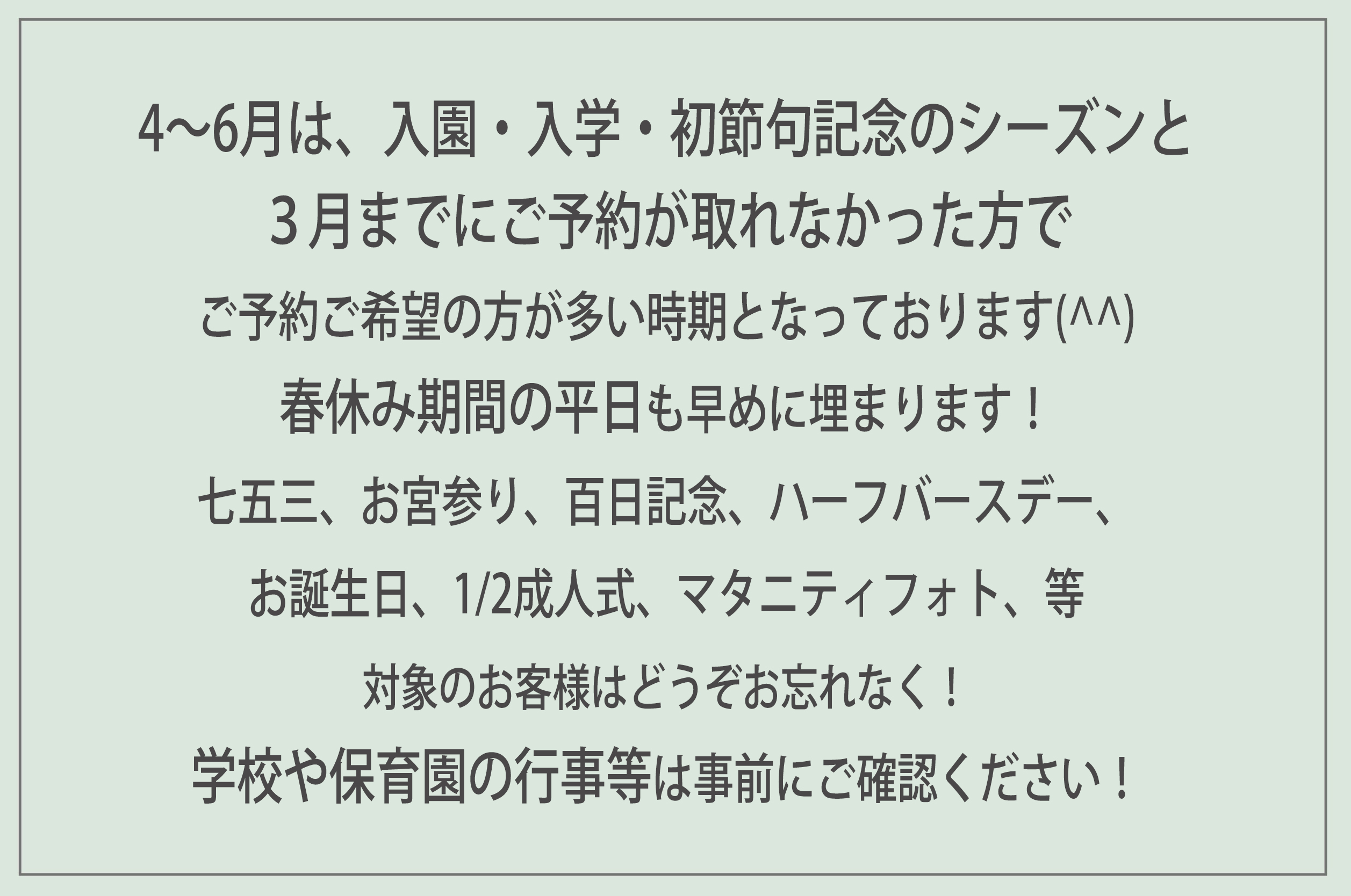学校や保育園の行事等は事前にご確認いただいてからご予約されてください!