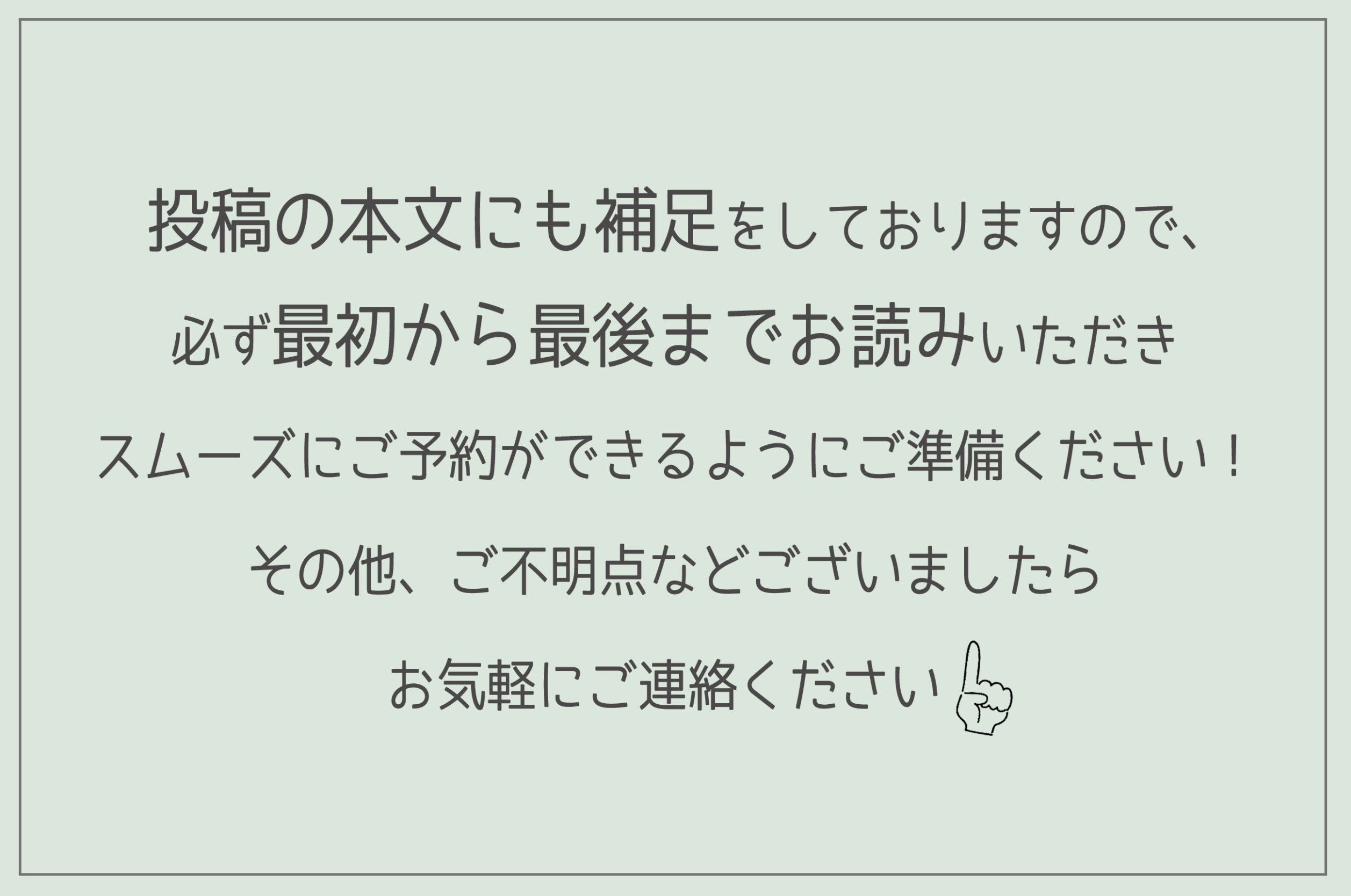 LINEの受信の順に折り返していきますが、折り返す直前まで既読にしませんのでご了承ください👍