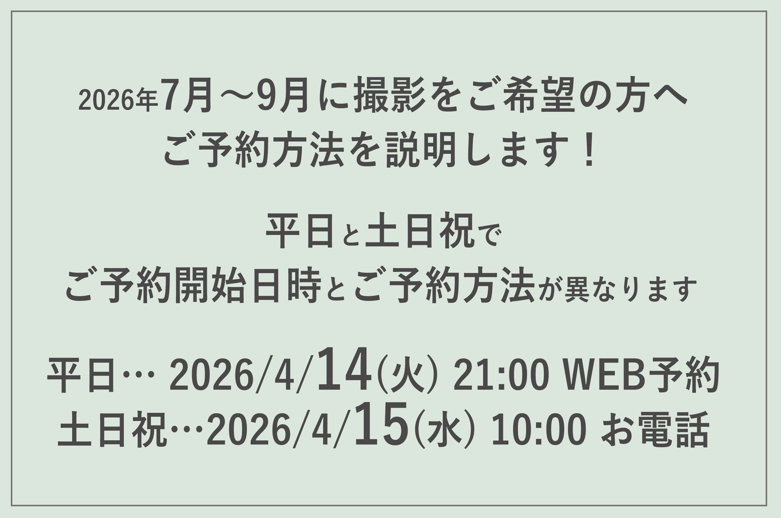 2026年7〜9月撮影のご予約スタート♪