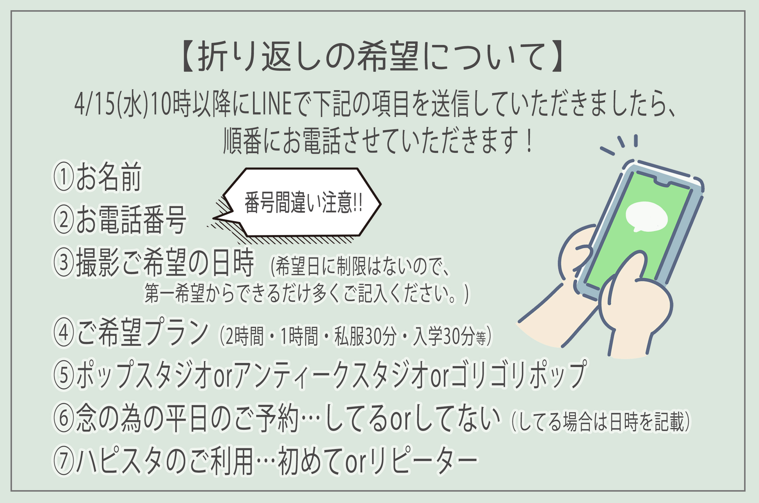 お電話番号の間違いがあると順番が遅くなりますのでご注意ください!