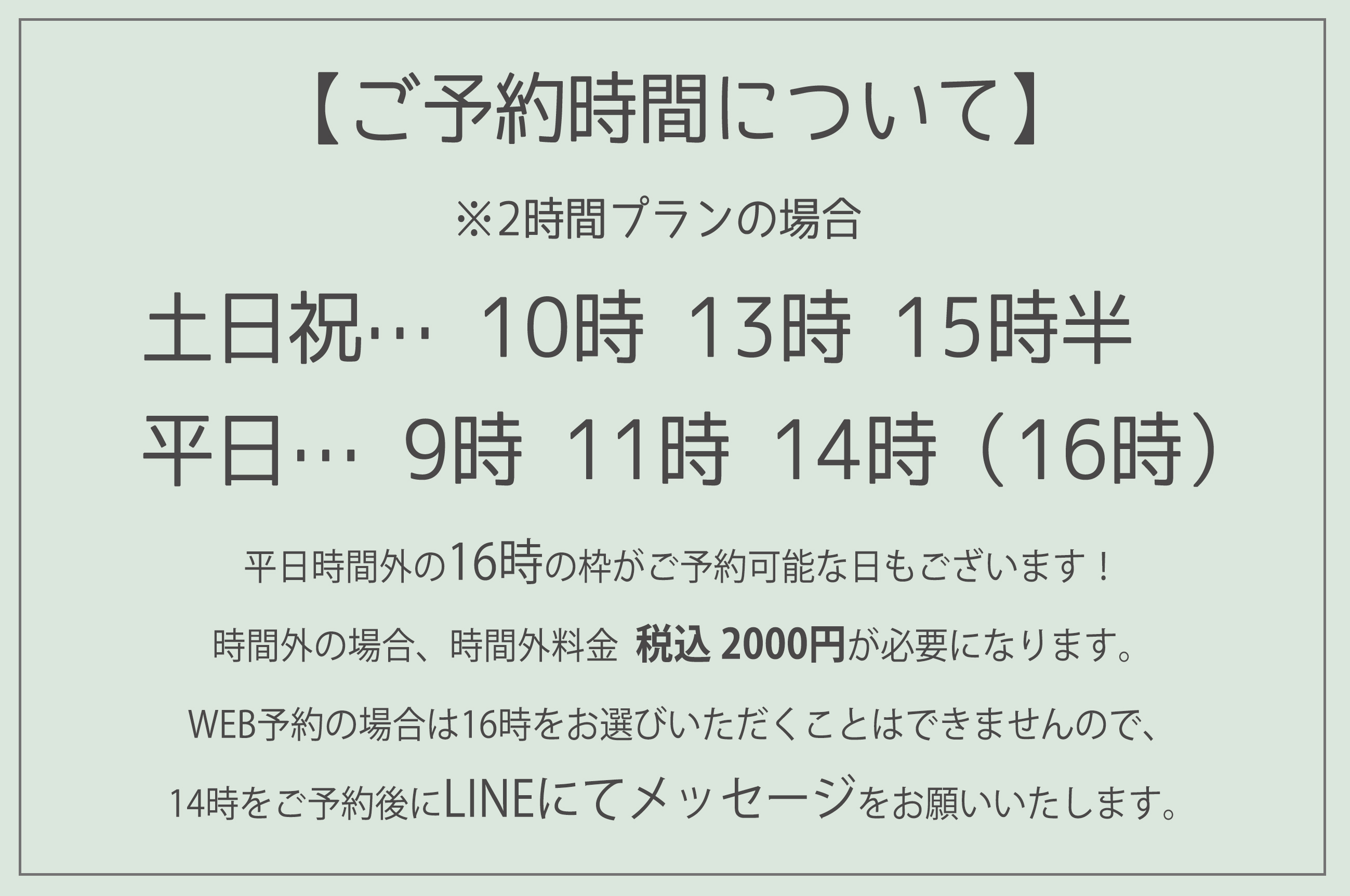 【ご予約時間について】※2時間プランの場合